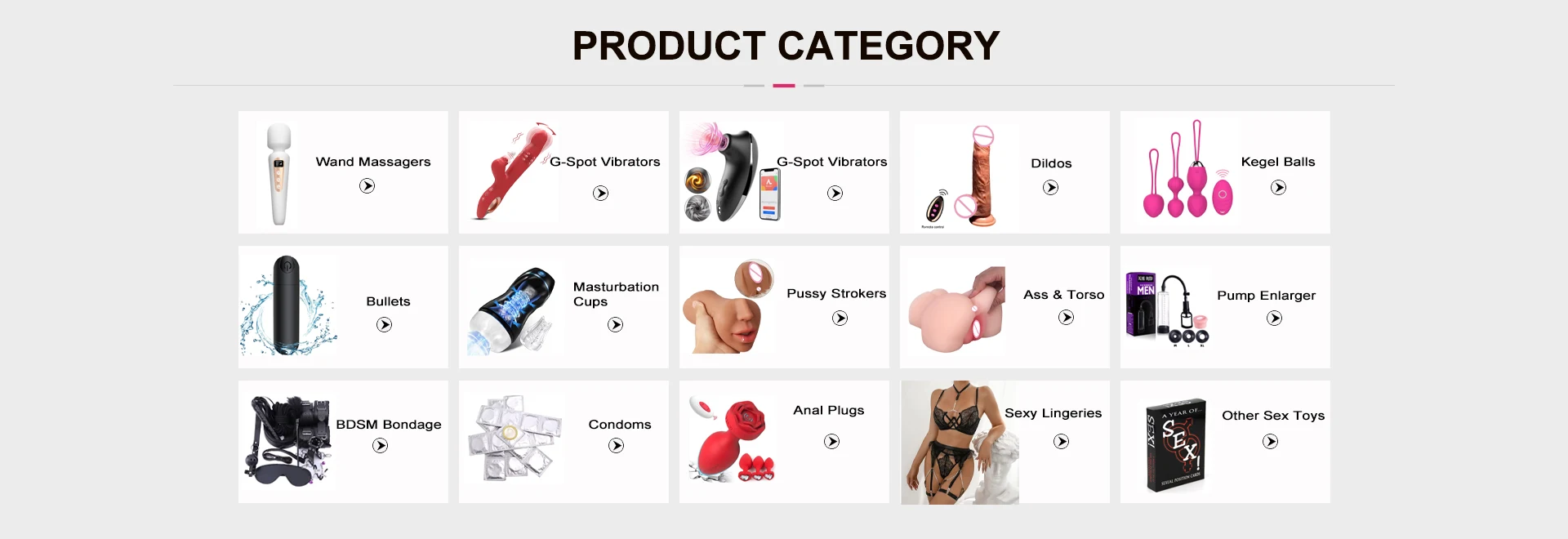 ผลิตภัณฑ์หลัก:เซ็กซ์ทอย, เซ็กซ์ทอยสำหรับผู้ใหญ่, ดิลโด้, ไวเบรเตอร์, บอล Kegel